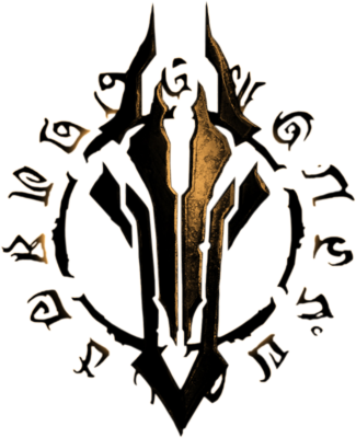He is 9 foot tall,with long black hair tied into a ponytail, almond shaped eyes and arched brows as he always looks amused. He has a medium sized nose, a thin upper lip with a fuller bottom lip. He is strewn with multiple scars, has claws, and marks on his upper shoulders. He dons hooded robes mixed with armour, usually black. He wears heavy black armour when in combat.This mark is engraved on both his upper shoulders: